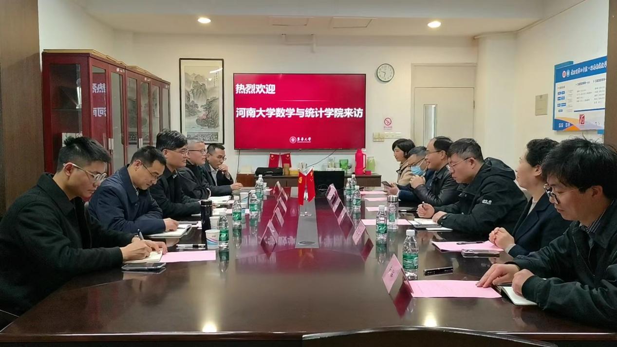 党委书记曹志伟、院长韩小森、副院长杨一平、唐恒才等一行来理学院调研交流。理学院党委副书记(主持工作)谢峰、党委副书王乔松、数学系主任秦玉明、副主任李美丽、杜玲珑等参加座谈会。