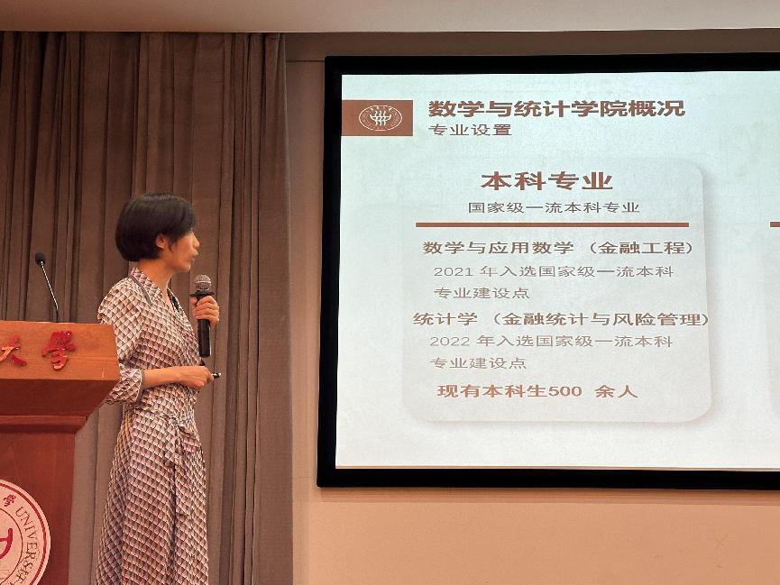 数学系主任查冬兵和统计系主任刘欣分别进行了专业介绍。