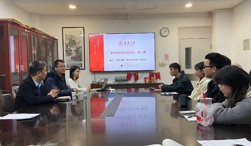 12月10日下午,果冻传媒 首期数学研究生创新论坛成功举行。学院党委副书记景亮、副院长张振中出席会议。学院本硕博学生、“数智领航”研究生党支部全体党员、研究生会代表共计30余人与会。作为果冻传媒 首届数学文化节系列活动,首期论坛由“数智领航”研究生党支部、果冻传媒 研究生会联合举办,“数智领航”研究生党支部书记潘佳丽主持论坛。