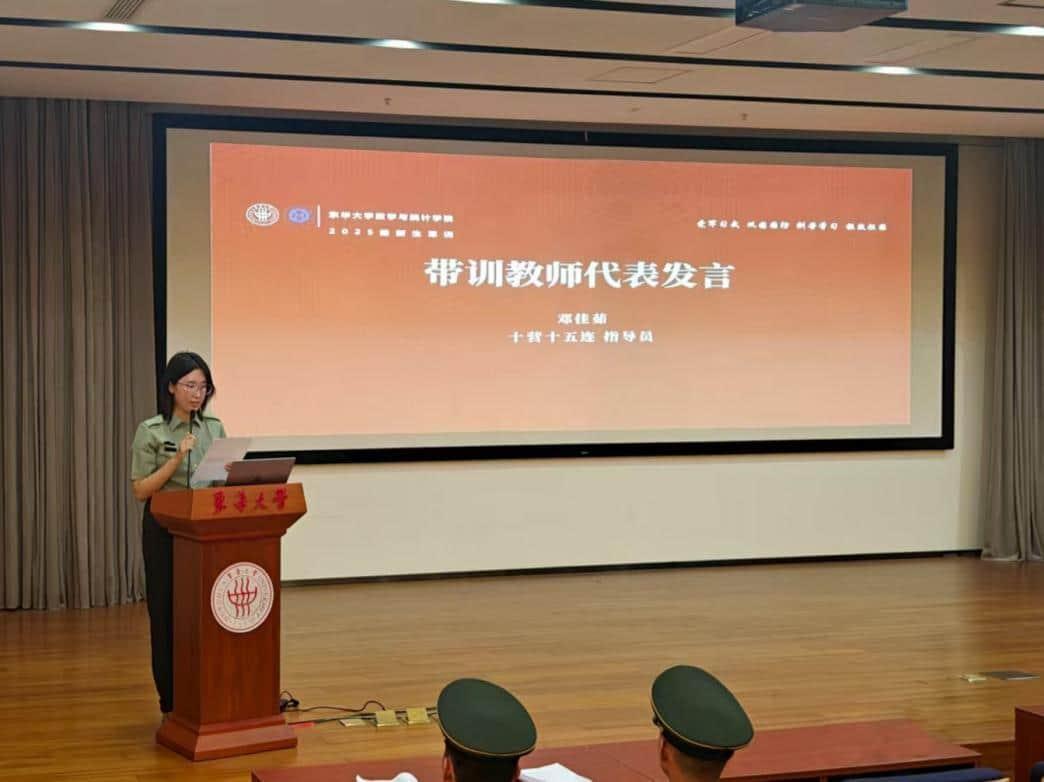 带训教师代表邓佳茹、受训学生代表张宇平及承训教官分别发言。学院将全力做好组织保障和思想引导工作,密切关注学生状态,与承训教官密切配合,确保军训工作安全、有序、高效开展。参训学员郑重承诺,将严格遵守军训纪律,发扬不怕苦、不怕累的精神,认真完成每一项训练内容,以实际行动践行“请党放心,强国有我”的青春誓言。