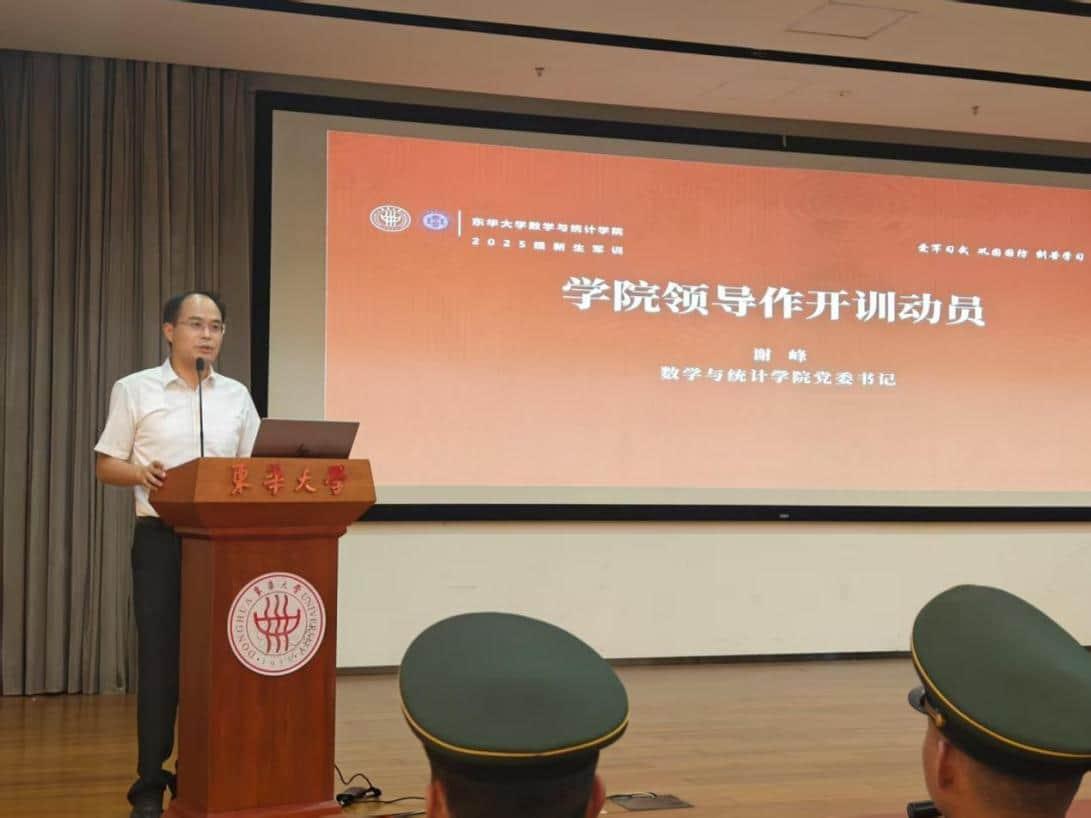 谢峰为大会作开训动员讲话。他表示,军训是大学生思想政治教育的重要环节,是增强国防意识、锤炼意志品质、培养集体荣誉感的实践课堂。他希望同学们严格要求自己,服从指挥、刻苦训练,以饱满的热情和昂扬的斗志完成军训任务,展现数统学子良好的精神风貌。
