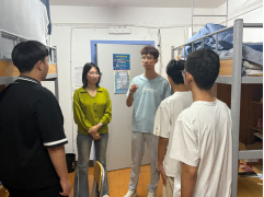 晚上,新生辅导员邓佳茹和姚名远来到新生宿舍,与新生们进行了面对面交流,关心询问了同学们的心情与状况,表达了对同学们即将开启大学生活的美好祝愿。